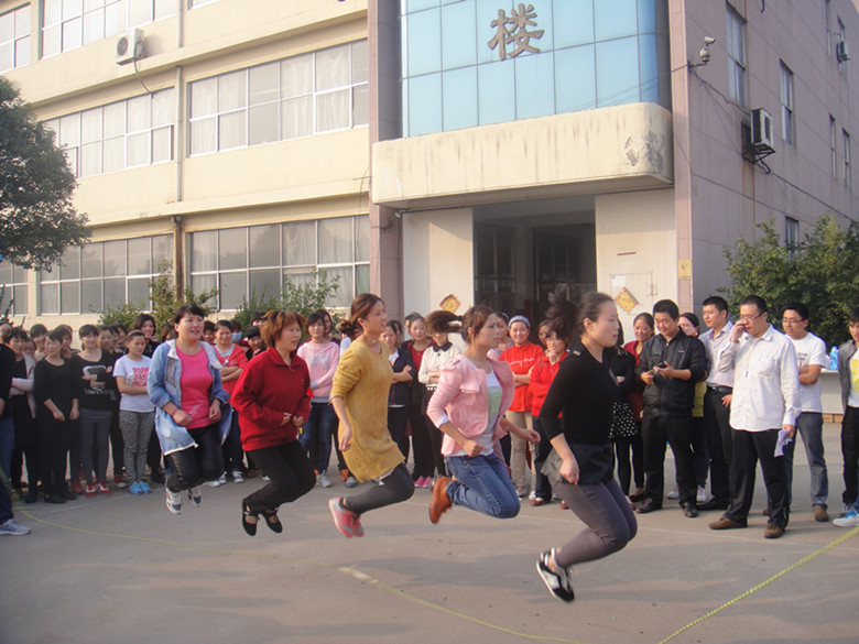 2014年10月22日,公司組織舉辦了2015趣味運動會,這是我司成立以來第二次舉辦該類活動,活動設置了拔河、集體跳繩、滾雪球、協(xié)力競走、綜合接力五個項目。按工序分組參加比賽,廣大員工積極參加,累計251人次參加活動,占全員比例的78%。根據(jù)比賽規(guī)則決出冠、亞、季軍共105人次,占全員比例的33%。趣味運動會圖片如下: